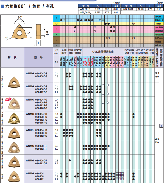 日本京瓷數(shù)控刀片 鋼件加工刀片 WNMG080408-GS CA530 凸三角刀片