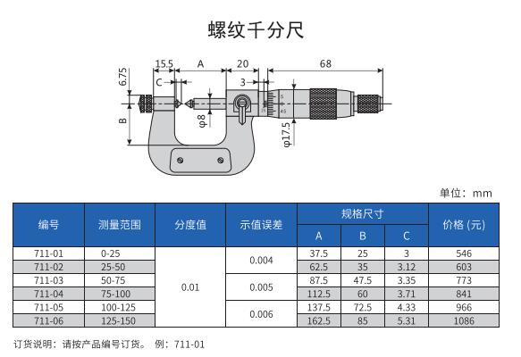 哈量量具 哈量螺紋螺紋千分尺0-25 25-50 50-75