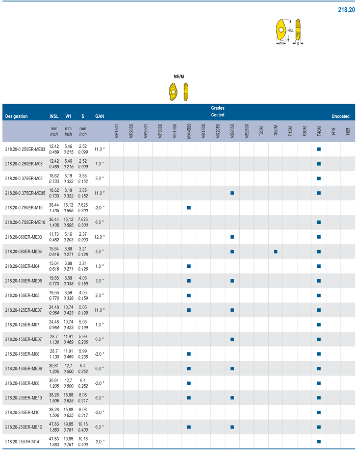 山高刀具山東代理,218.20-200ER-ME10 F40M,柳葉粗銑刀片
