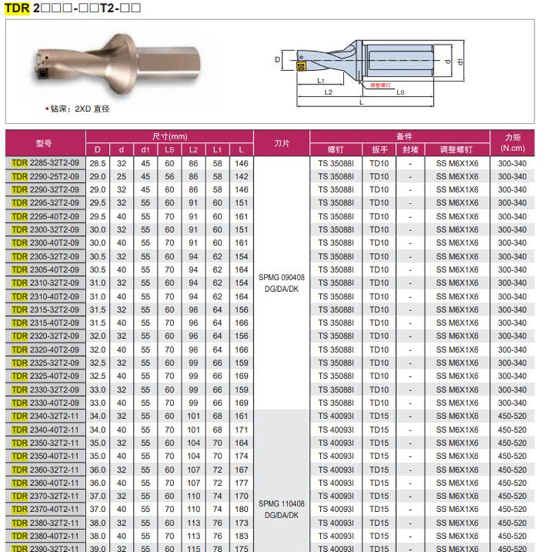 韓國特固克U鉆TDR 2330-40T2-09裝SP刀片