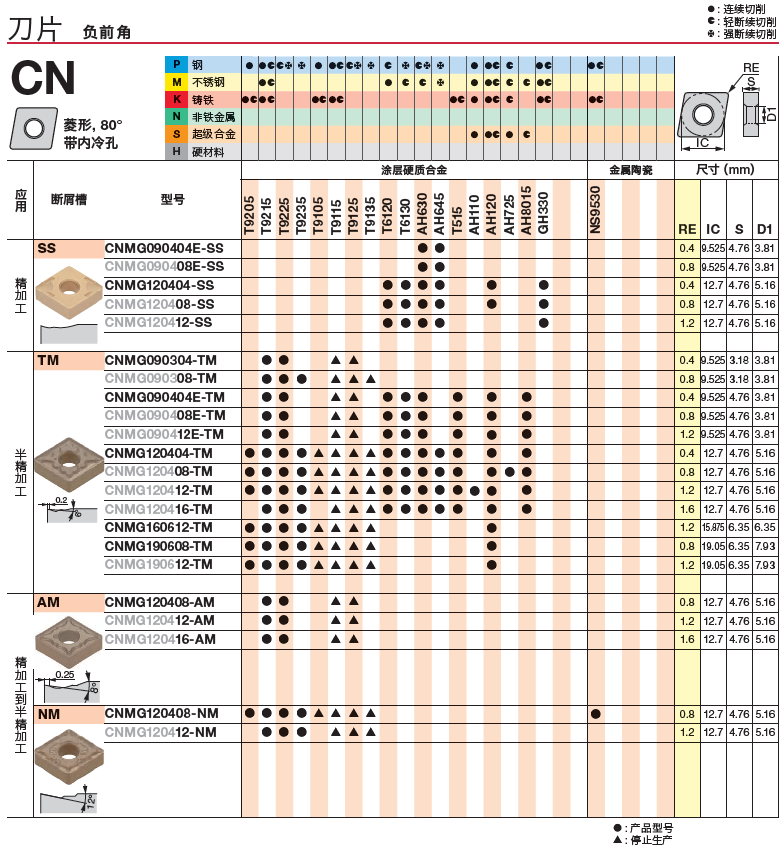 日本泰珂洛 數(shù)控刀粒,CNMG190608-TM T9225,耐磨 車刀片