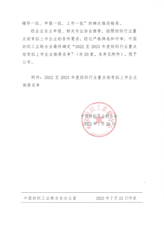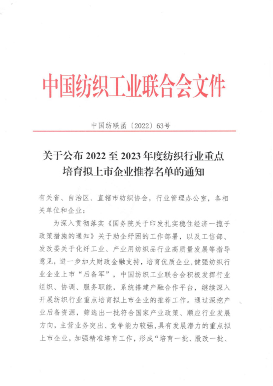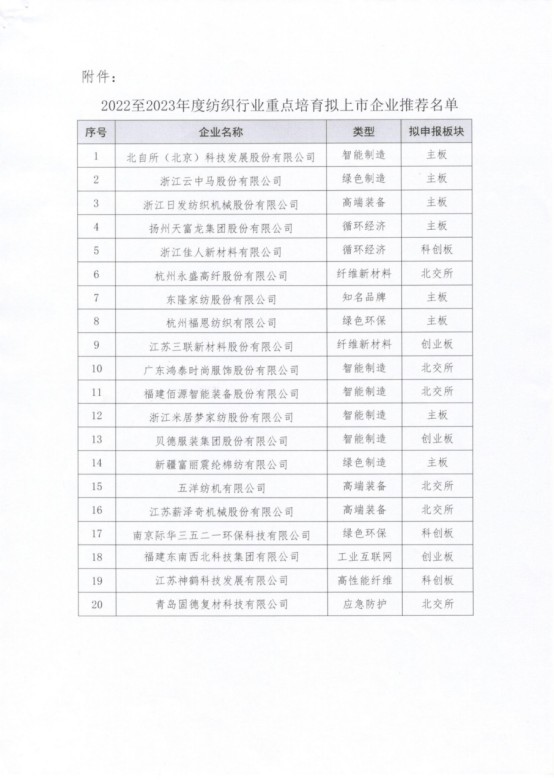 2022-2023紡織行業(yè)重點(diǎn)培育擬上市企業(yè)推薦名單